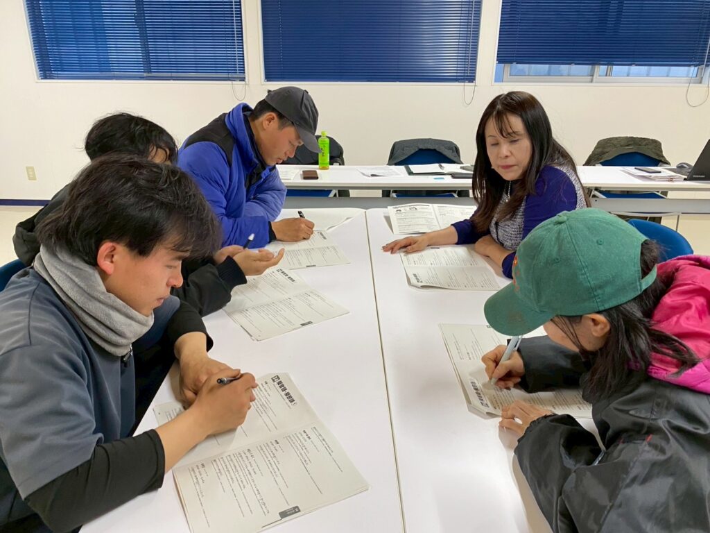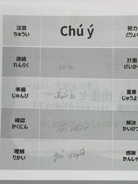 リラックスした雰囲気のあとは、より実践的な内容へと移りました。日本人でも使い分けが難しい「尊敬語」や「謙譲語」といった敬語の基礎、また「万が一遅刻してしまった時の伝え方」など、現場ですぐに活かせる表現を丁寧に教わりました。さらに、日本語能力試験(JLPT)合格へのモチベーションが高まるようレベル別の試験対策も行われ、皆一様に真剣な表情で取り組んでいたのが印象的でした。
